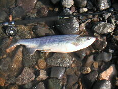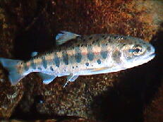 め、遡上し陸封された魚種で体側に綺麗なパーマークがあるのが特徴。渓流ではイ