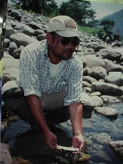| 【会員】長野方面の本流・山岳渓流を主とするアングラー。ボルボで1日2・300kmは平気で走るタフマンでもある。また、秘伝志田燻製は絶品でそれ食いたさに獲物を献上するメンバー多し。 |