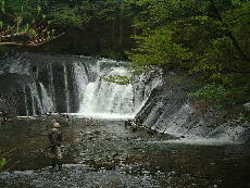 湯川:水温10℃晴れにもかかわらず肌寒い風の吹く赤沼茶屋に11時到着。とりあえず人の入り具合と運動のため一路湯滝を目指す(約4km)。下流部は20人ぐらい上流部5から6人ぐらい。写真写りの良さそうなポイントをチャッチャカ釣り下がって行く。上流部ではほぼそのポイントで釣れた。しかもすべてドライ(#18〜14)。ライズがなくても打てばライズが始まる魚影の濃さには驚きでした。あれもこれも先週、西野川で鍛えられたおかげです。ただ、キャストがミミッチクてちょっとストレスに・・・。「ブルック17cm〜24cm5本・イワナ15cmクラス2本」試してはいないが監視員いわく、木の下にニンフフライを流し込めば爆釣らしい。