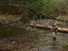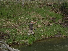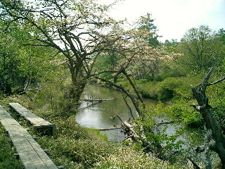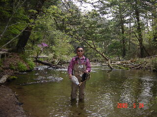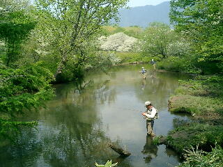 | 6月8日(日)湯川 晴 気温18度水温15度 9時〜18時出川さんに案内していただいて初めての湯川釣行。日光戦場ケ原まではひどく遠いのではと考えていたが東京を6時に出発して8時15分には赤沼茶屋に到着。私は赤沼茶屋から釣り上がり、出川さんは湯滝から釣り下るという方法をとった。ちょうどズミが満開の季節で湯川の左岸をゆっくりと花見をしながら釣り上がるという最高の釣行になった。戦場ケ原をゆったりと流れる、日本の風景のは思えないチョークストリーム。日本のフライフィッシング発祥往時が偲ばれる。湯川の名物、ブルックトラウトはといえば・・・。あちらこちらで小さなライズをしているが何を捕食しているのか分からない。トビケラも出ていたがエルクヘアの18番には反応なし。必ずフライを見に来るがUターンの繰り返し。青木橋の下流までフライを取っ換え引っ換え、苦労して何とか5匹。CDCダン20番、CDCミッジ22番、ケニス28番という訳の分からない選択だった。午後からは禁漁区域を抜け、小田代橋の上流から釣り始める。ここから湯滝までは今までと全く渓相の異なる釣り場。いわゆる日本的な渓流だ。時にはライズするやつを時には居着きそうなポイントを丹念に流すとゆったりと飛出してくれる。下流の釣りがヤマメの釣りなら上流はまさにイワナの釣りだ。午後からは児滝の下で釣ったタグ付きの良型2匹を含め9匹の釣果。今までのことは分からないがキャッチアンドリリースのせいか魚の数は豊富だと思う。帰ってきてから調べると下流域のあのライズはトビケラのピューパに反応しているらしい。kashiwai |
