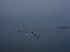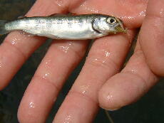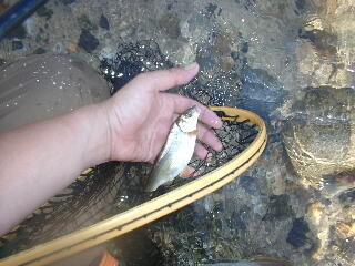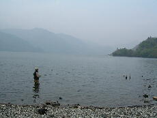 中禅寺湖:夕方、大尻をロケハンすると無数のスピナーやアダルトがスウォーミングしていた・・が、ライズなし。翌日早朝5時より金谷ボートハウス横でミノーをリトリーブするが全然あたる気配なし。足の間を公魚たちが優雅に泳ぎまわる平和なひと時。朝食を摂って温泉に浸かり仮眠。10時ごろより「本つが」あたりに立ちこむ(水温8℃)ユリスカが風に押し流され水面を漂い所々で小さなライズを確認。釣ってみれば7cmほどの稚魚。3本ゲット!「ムジナ窪」に行っていた自転車フライマンに聞けば「朝ニジマス(25cmクラス)が2本釣れただけ・・」とのこと。大島商店の親父いわく「まだ水温が低い!来週からだね・・・岸からでもレイクの80cmクラスを釣ってくる。ティペットは3号以上でないとダメだね。」とおっしゃる。どこで?「その辺で・・・。」??? |