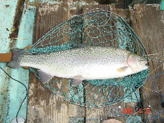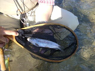 翌朝、4時起床、5時から丸沼でボートフィシングです(写真環湖荘)。水温10度、気温なんと6度(でっせ!)。薄着のせいでもう芦ノ湖解禁より寒くて寒くて7時にはホテルに退散しました。朝食後にはようやく日がさしてきたので気を取り直して8時半頃より再びボートに乗船。前回良く上がったホテル前ワンド右岸で、40cm前後の虹君(放流もの)を8匹釣りました(写真丸沼の虹君)。フライはダークブラウンのフラッシュバックニンフ杉坂バージョンです。すっかり舞い上がって(また、周りに10艘のボートが集結してしまったので)もう湯川アゲインで、11時から湯川再訪です。気温18度、水温12度でjこのコンデションでやるっきゃないと、武者震い。結果?もう昇天しました。ドライで6匹(その他2本ばらし)です。20番のコンパラダン、CDCダンが当たりました。これは、もう何か上出来すぎて還って不吉な予感がするほどでした。日光湯川の上流は忍野と違ってウエードフィシングが出来るので、阿寒川と同様に最高のフィールドです。ただ、遊歩道を歩く皆さんの声援が多すぎて辟易ですが(何釣ってるの?、食べておいしいの?、なんで逃がしちゃうの?などなど、釣ると拍手も起こるんです?!)帰りは幸運すぎて交通事故でもと思ったのですが、途中ランデングネットを踏んづけて折ってしまい(写真釣れたポイント)、なぜか安堵の気持ちでライズ、ライズを横目でにらみ午後2時半には湯川を出発(幸せはほどほどにが私の心情)しました。帰りも東北道はスイスイで途中30分ほど爆睡し、6時頃無事帰宅です。う〜ん、どうしよう、来週また行きたい。ミーティングを是非。 Degawa