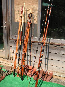 本来の目的は工房見学と秋水氏の新作「石鯛竿」を見ることでした。当日は和竿教室が行われていて、しかも本漆の塗り行程でお相手はしてもらえないかと思ったのですが、尋ねると、こころよく製作中の石鯛竿を見せていただき、2時間以上炎天下で伺いました。それなりに他の竿師と違う「こだわり」と「遊び心」が盛り込まれ、物の本には記されていないこといっぱい聞いて帰ってきました。次回は遊び心タップリの西洋毛鉤竿を製作持参します?