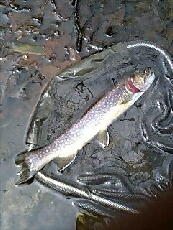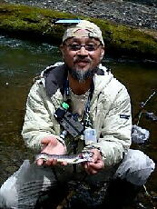 | 久々に淡水魚と遊んできました。日陰で残雪・晴れたり雨だったり、水は薄にごりと微妙なコンデションの中、#20〜14までのダンのみで「肉離れ」の左足を引きずりながら釣りあがって参りました。じゃら瀬ではチビブルックが・・・大木の陰では25〜30cmクラスが・・・最上流部では痩せこけたイワナが半沈みのダンに飛びついてきました。ハイカーも釣り師も少なく魚影も濃く、ビッコを引きながらのんびり釣りを楽しんできました。今年はいいかも・・・ちなみに湯の湖の立ちこみもなかなかのものでした。 maji |