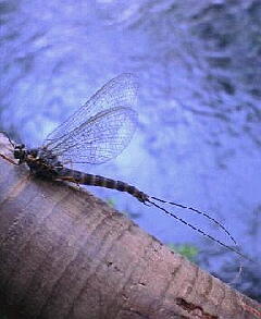 自衛隊橋下流のダム下は、かなりの大物が出ますがキャスティングし難い場所が多いです。ロールキャスト&ショートキャスト(基本は、ダウンのメンディングの連続)で狙ってみて下さい。そうすれば・・・。6番〜16番くらいのナミフタオカゲロウが八ッチしていてかなり大物が(50オーバーのレイン・ブラウン)出ます。それに、パーマークのあるレインボーが出る事があるので要注意(それに水の流れも重たいです)。