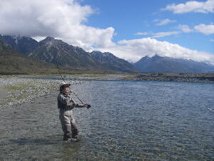 5日目はあまりの暴風に山に近いエリアは釣りにならないと判断し、クルマで3時間も走って平地の川(Opuha River)と移動。ビッグサイズは望めない川だし、水は濁っているし・・・最終日にしては辛〜い1日でした。でもまあ、デコらなくって良かったけれど。