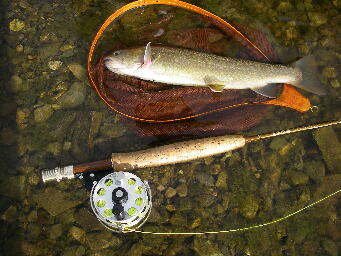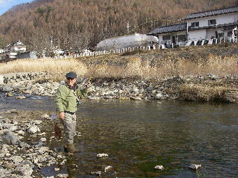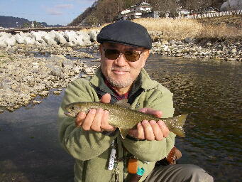 | 3月3日、4月下旬並みの気温になるという天気予報を信じて千曲川に行く。信州峠には雪もなく本当に暖冬だ。数年前に地元の老釣り師から教わった、大深山橋と本郷橋の中間あたりのちょっとした深場のポイントに入る。11時ごろからライズが始まる。ミッジの流下があるがまったく反応しない。水面に向かって上がってくるコカゲのニンフを食べているようだ。ドライに全く反応しないのでフェザントテール18番でルースニングをするとあっという間にイワナ2匹とウグイが4匹。南佐久漁協の今年の放流数はイワナ、ウグイがそれぞれ10万匹と書いてあったのでこれも頷ける。3時過ぎから大深山橋下流の堰堤下に移動してルースニングすると一発でイワナをヒット。ニジマスのようにロッドをまげてランディングすると尾ヒレが美しい、35センチの大イワナだった。おそらく、今年の放流ものではない、冬を1年超えたものだと思う。翌日はこれも老釣り師から教わった、川上村の体育館前の橋の下流のポイントに入る。ここは9時過ぎから小さなライズが始まった。時々コカゲのハッチがあると必ずライズをしてイワナが釣れる。だらだらと2時過ぎまで釣れた、お勧めのポイントです。さすがに千曲川、この時期にライズの釣りが出来るのがうれしい! kashiwai |