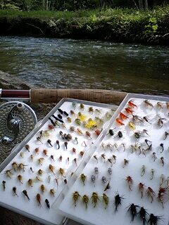 3日目の川(Dobson)はこう見えてスプリングクリークです。ただ、気温の上昇が激しすぎて、トラウトたちの活性は極端に下がっていました。おまけに大増水で、チビの私がクロスオーバーできる場所が限定されちゃって、苦労しました。
