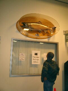アラスカ空港にこれみよがしにあるキングサーモンの剥製!キングのラストランと聞いてきたが本当に釣れるんだべさか?