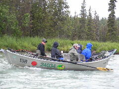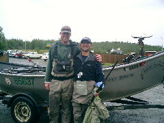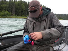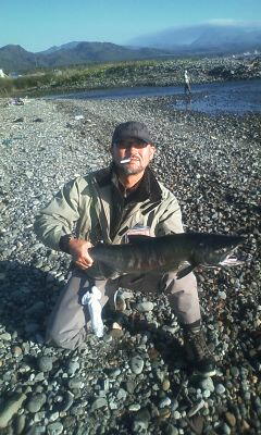 キングらしきあたりがあった・・・がいきなりすごい勢いで上流に横に走られ 他のボートの仕掛けと絡み20号ラインが切れた。 この艇では釣果はなかたんだども 他船のキングは拝見した。30分ぐらいのやり取りでガイドも手漕ぎでキングを追ってヘトヘト!